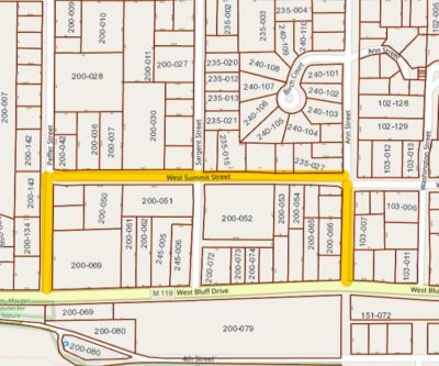 Starting on Monday, September 13, the City will begin work on replacing its water main from its Bullmoose well to West Bluff Drive (M-119). This project will require work along M-119 between Peffer Street and Ann Street. To ensure a quick and safe completion of the project, the City has created the temporary following detour route: M-119 to Ann Street to Summit Street to Peffer Street to M-119. Please see the detour route highlighted in yellow below. The project is expected to take about two weeks to complete. Thank you for your patience and understanding as the City completes this critical infrastructure project.